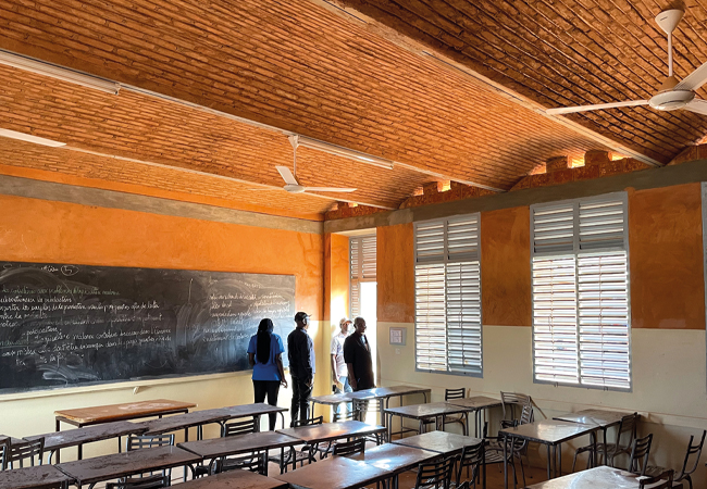 Max Fordham and architectural charity Article 25 worked on the refurbishment of Collège Amadou Hampaté Bâ, combining a passive ventilation design with the high thermal mass of the local laterite stone to achieve internal temperatures up to 8K cooler than external air temperatures on the hottest days.