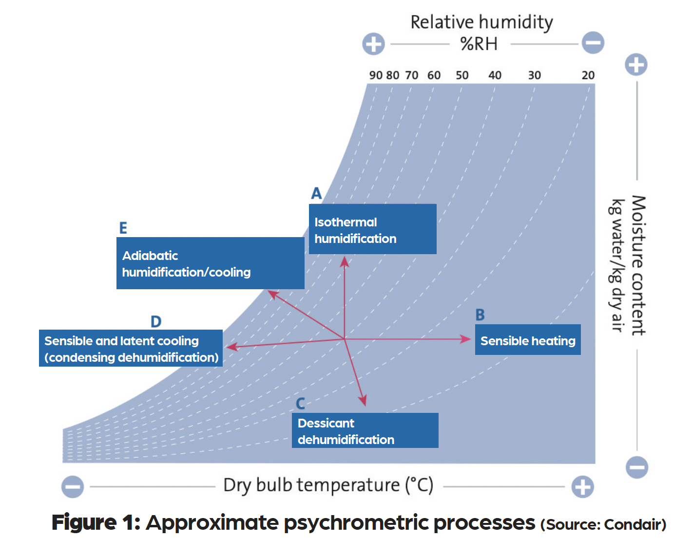 Dehumidification is a critical element of environmental control across a wide range of building and industrial applications. Psychrometric analysis provides a useful framework for bringing these considerations together to understand how changes in air temperature and moisture content interact, but it must be applied to airflow rates and moisture generation rates to determine the required dehumidification capacity.