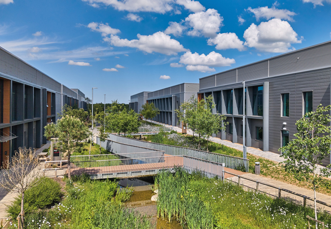 Building objectives at Bourn Quarter included minimising operational energy demand, reducing embodied carbon, and meeting the diverse occupier needs across the 10 commercial and light-industrial units.