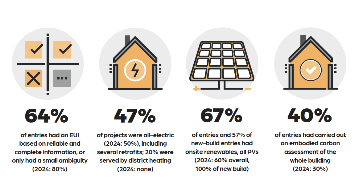 This year’s analysis shows marked improvements in the reliability of energy data and wider uptake of post-occupancy evaluation (POE), with many projects’ energy use being well below the national average. At the same time, challenges remain – particularly around onsite renewable reporting, district heating, embodied carbon, and refrigerants.