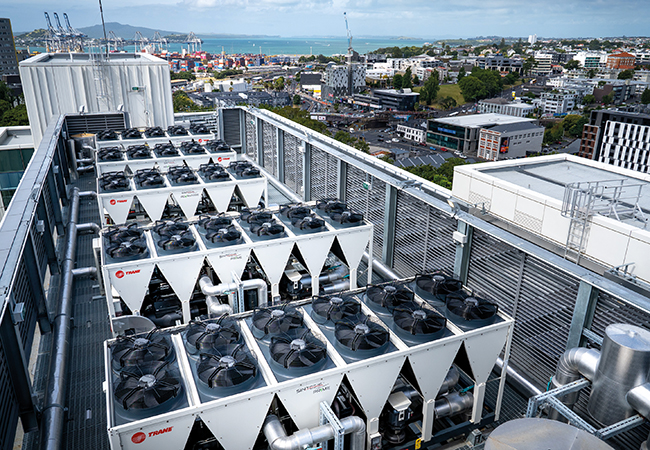 • Indoor air quality, with ventilation rates delivering 50% more outdoor air than NZ code requirements, and demand-controlled ventilation adjusting supply according to occupancy, keeping CO2 levels below 800ppm