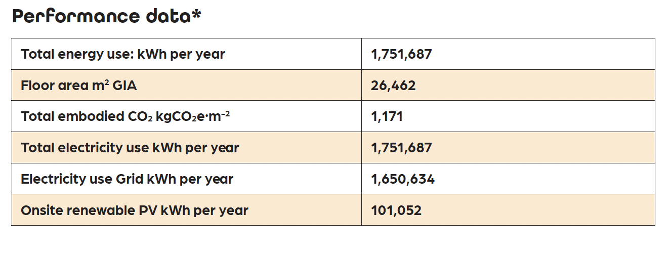 Energy modelling established operational energy targets of approximately 1,660MWh per year, equivalent to 8.1 kgCO2e.m-2 annually.
