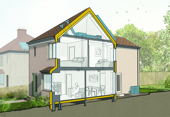 Combined with low carbon heating and onsite renewables, a fabric-first approach was fundamental to the success of the project. Reducing space-heating demand is the most reliable way to improve comfort, reduce energy bills and enable low carbon technologies to operate effectively.